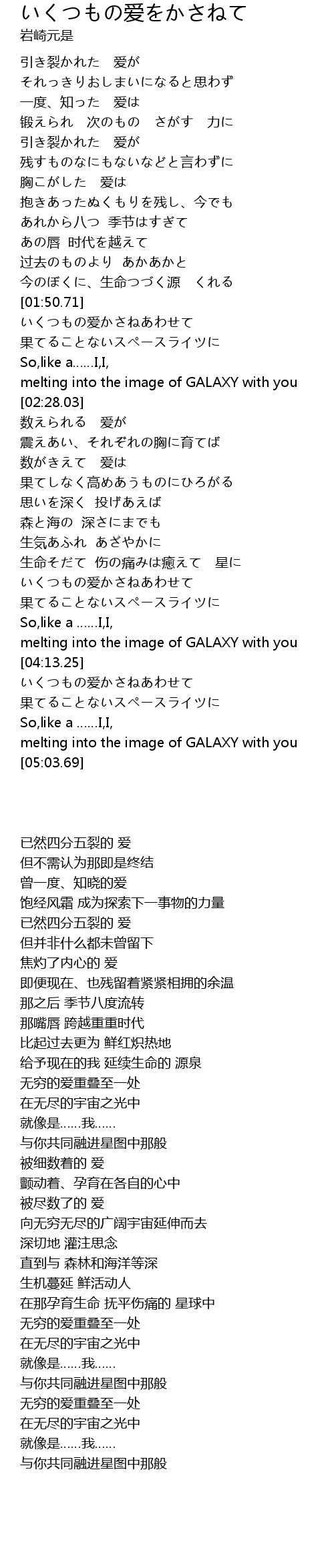 | [03:38.77] | いくつもの爱かさねあわせて |
