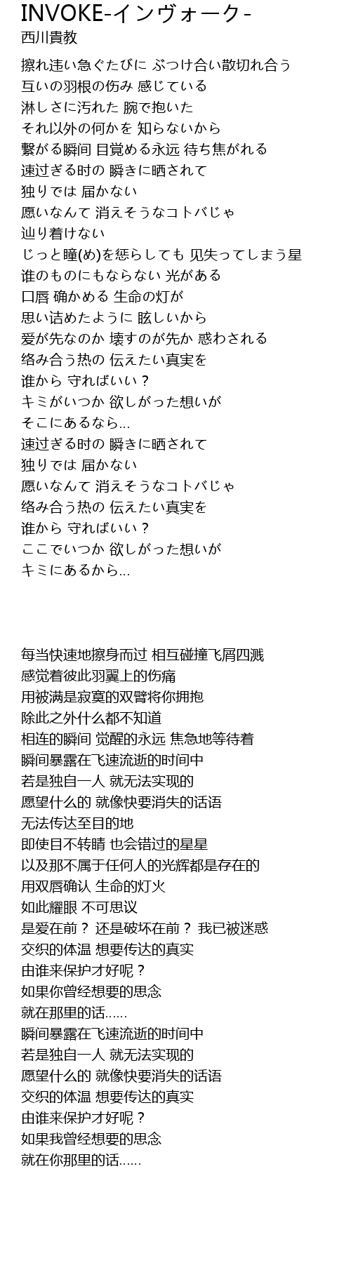 | [00:24.110] | 互いの羽根の伤み 感じている |