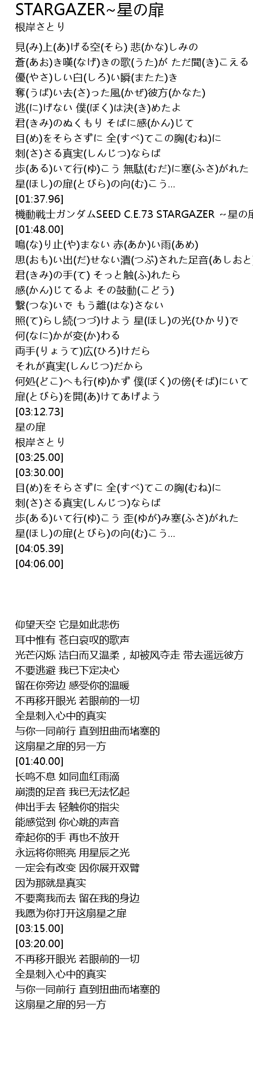 | [01:40.00] | 機動戦士ガンダムSEED C.E.73 STARGAZER ~星の扉 |