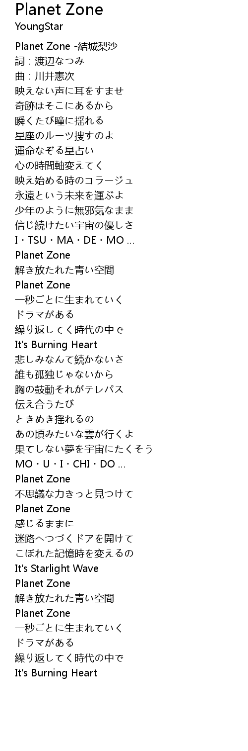 | [00:00.860] | Planet Zone -結城梨沙 |