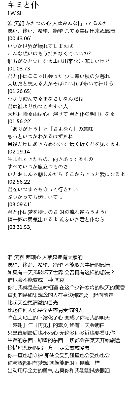 | [01:56.49] | 「ありがとう」と「さよなら」の意味 きっといつかわかるはずだね |