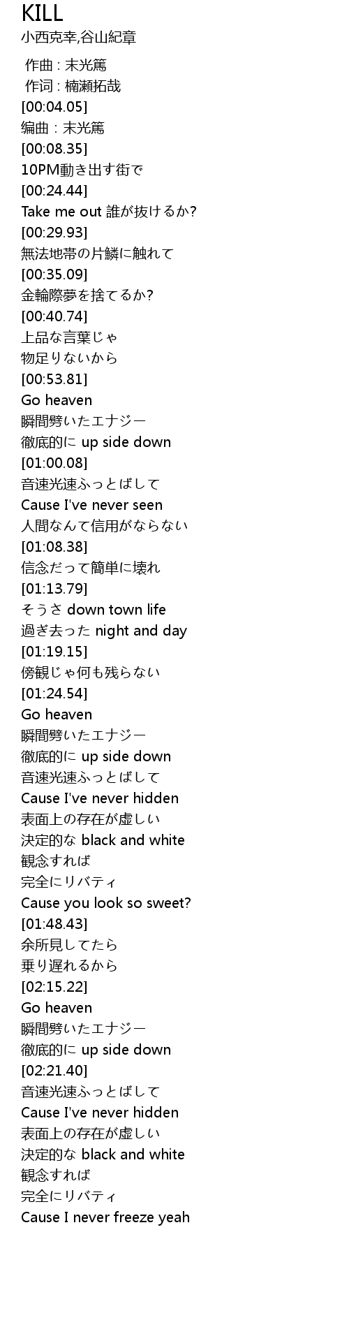 | [00:32.48] | 無法地帯の片鱗に触れて |