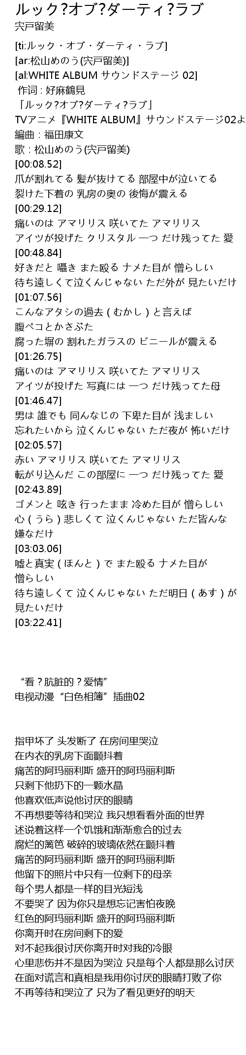 | [00:02.45] | TVアニメ『WHITE ALBUM』サウンドステージ02より |