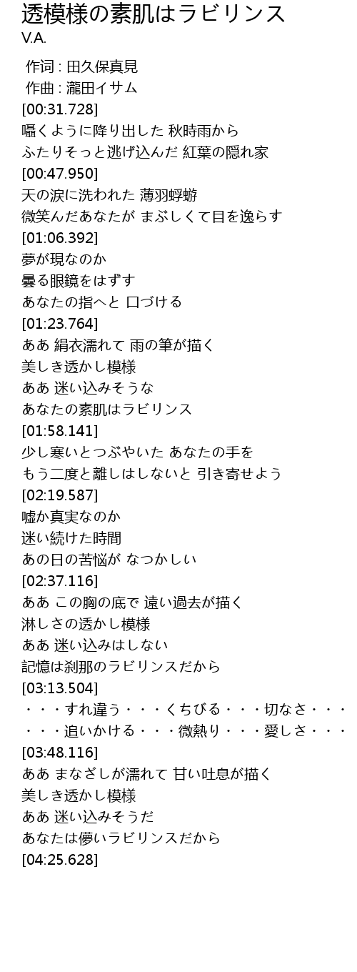 | [03:30.693] | ・・・すれ違う・・・くちびる・・・切なさ・・・ |