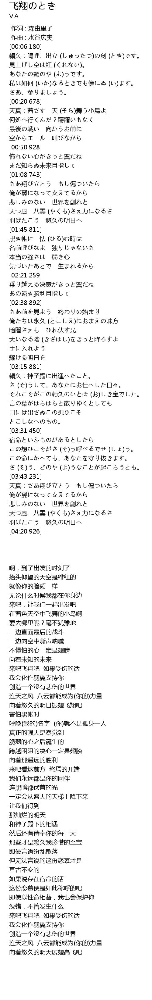 | [04:13.063] | 羽ばたこう 悠久の明日へ |