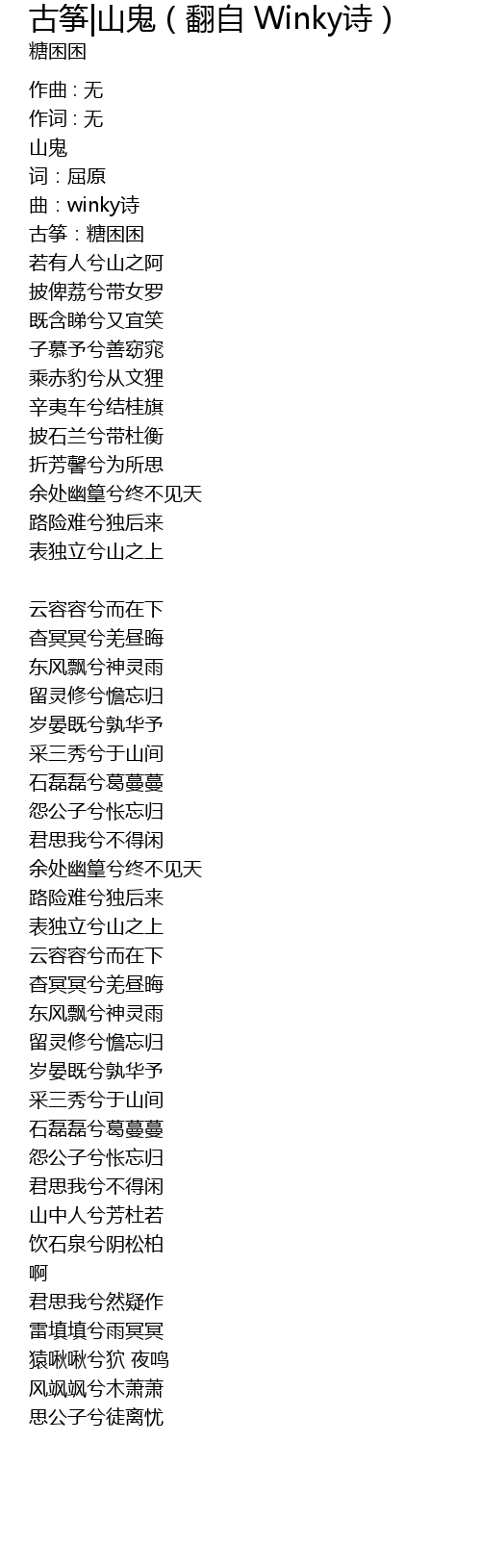 | Song | 古筝|山鬼(翻自 Winky诗) |