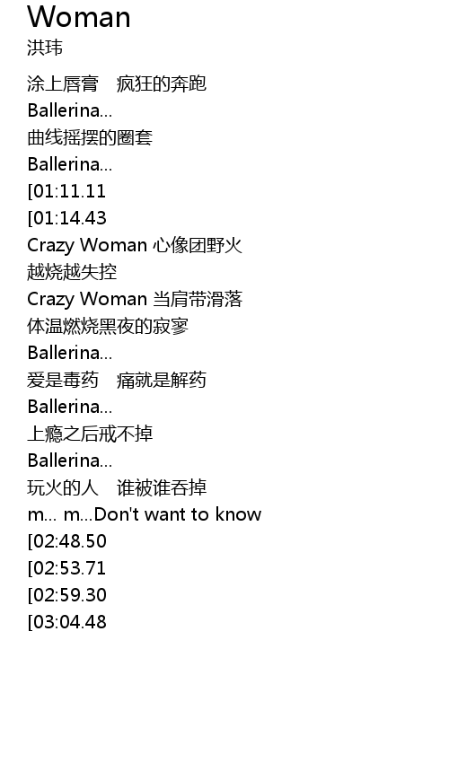| [01:30.43] | Crazy Woman dang jian dai hua luo |