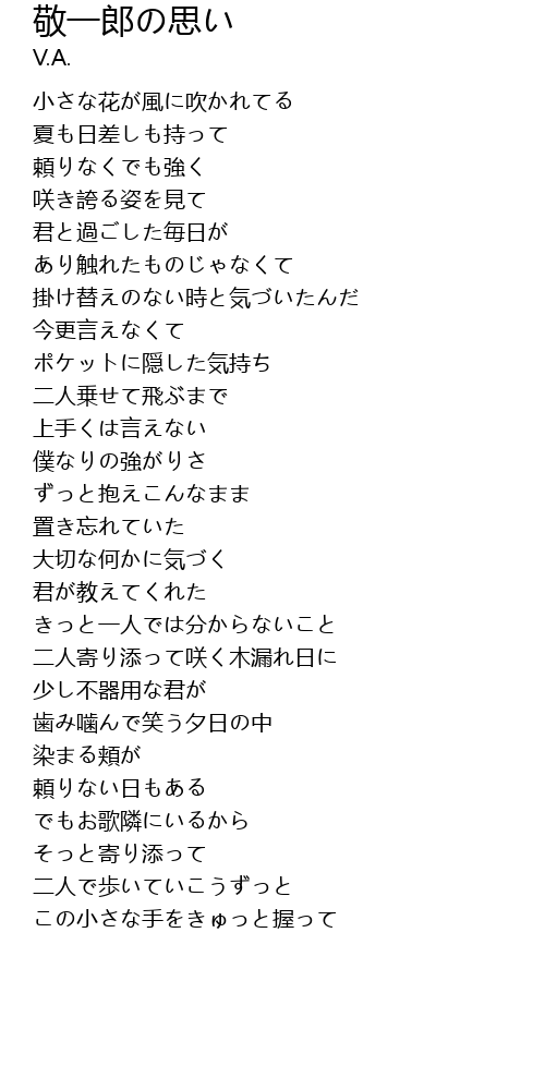 | [00:12.744] | 小さな花が風に吹かれてる |