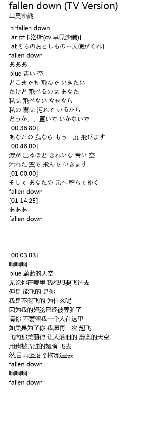 | [00:03.03] | fallen down |
