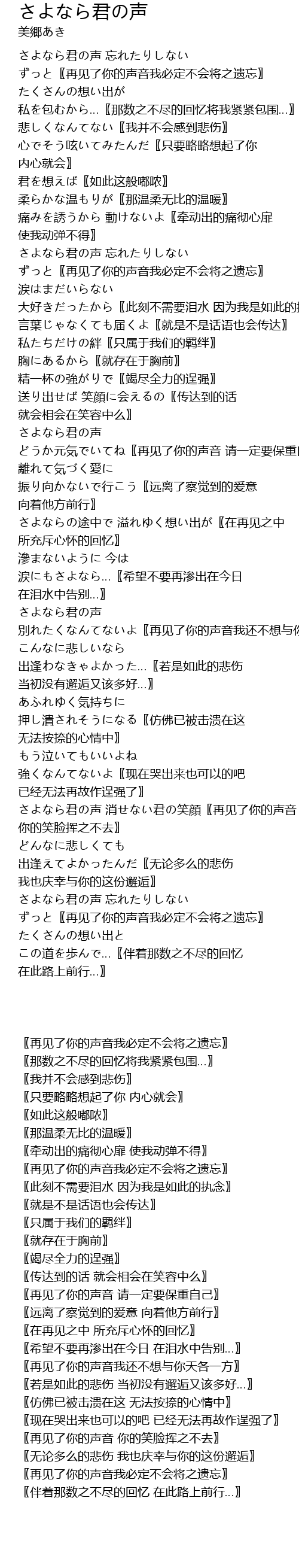 | [02:42.43] | さよなら君の声 別れたくなんてないよ〖再见了你的声音我还不想与你天各一方〗 |