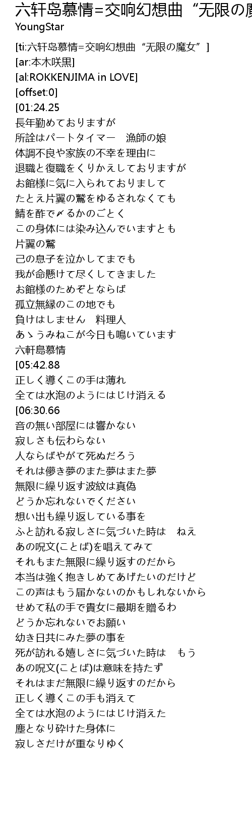 | [ti:六轩岛慕情=交响幻想曲“无限の魔女”] | |