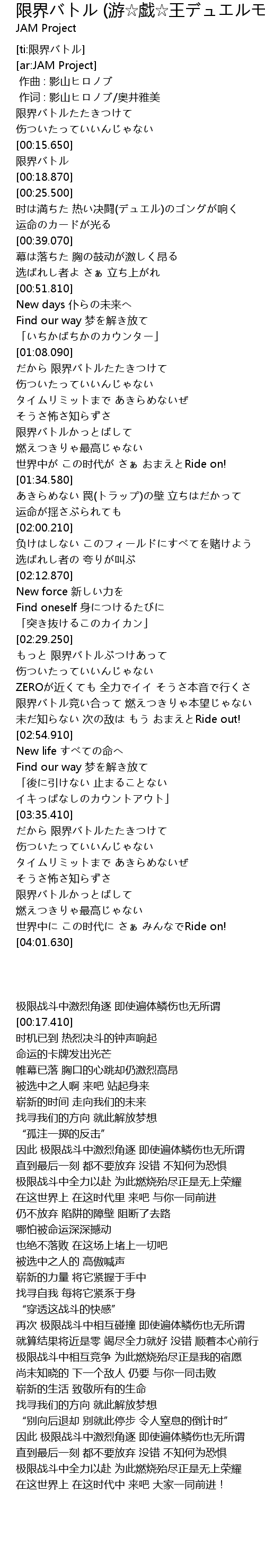 | [02:29.330] | もっと 限界バトルぶつけあって 伤ついたっていいんじゃない |