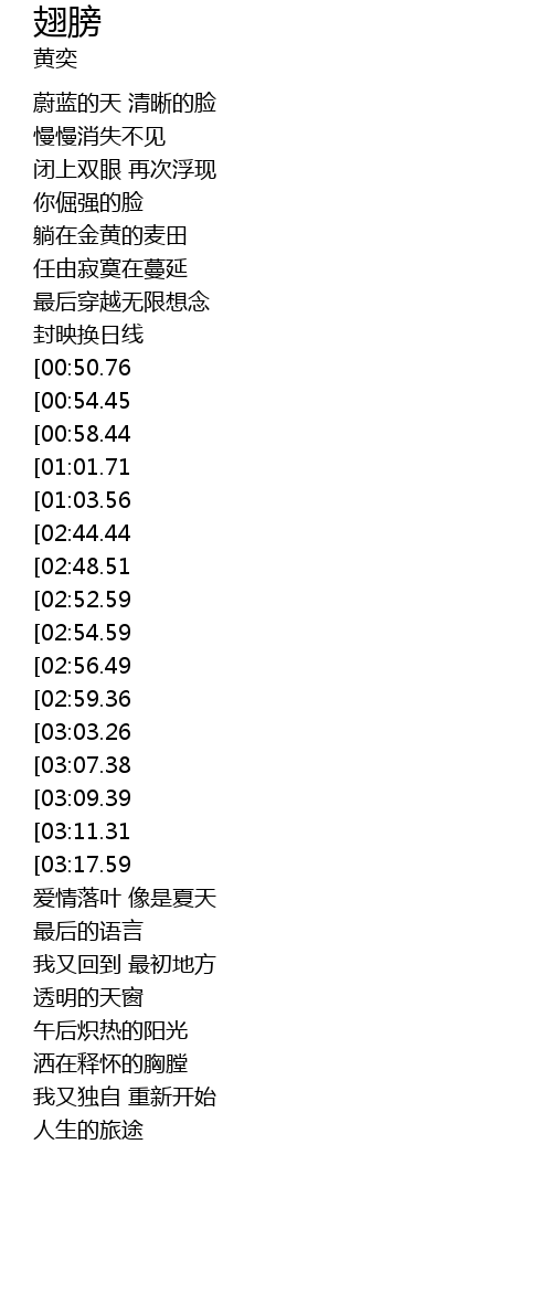 | [03:36.52][02:48.51][01:12.50] | 内心终于长出翅膀 |