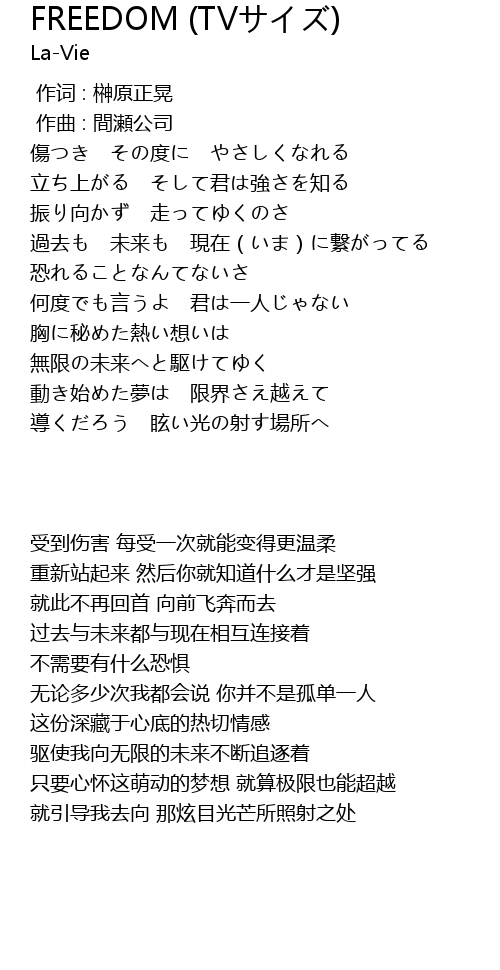 | [00:43.10] | 何度でも言うよ 君は一人じゃない |