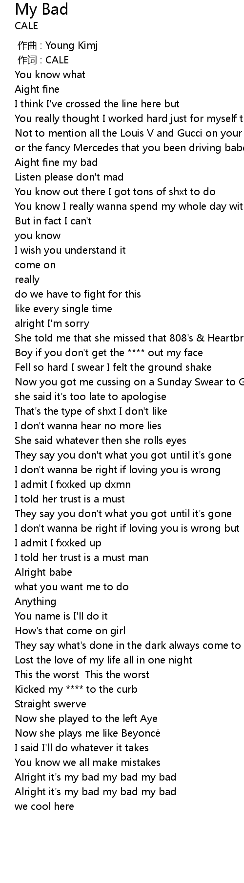 | [02:38.53] | Alright it' s my bad my bad my bad |