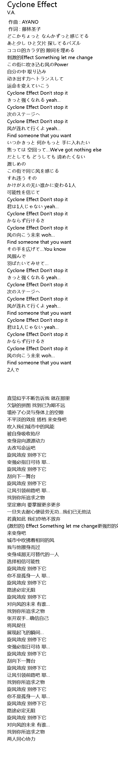 | [02:01.42] | Cyclone Effect Don't stop it |