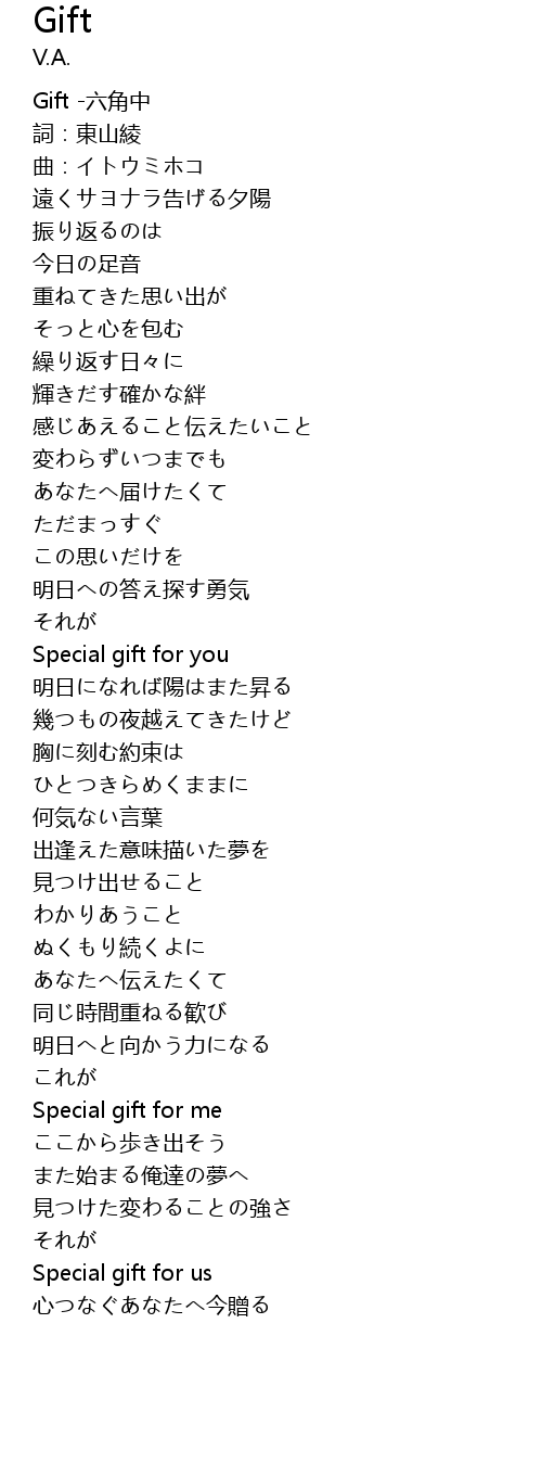 | [00:00.461] | Gift -六角中 |