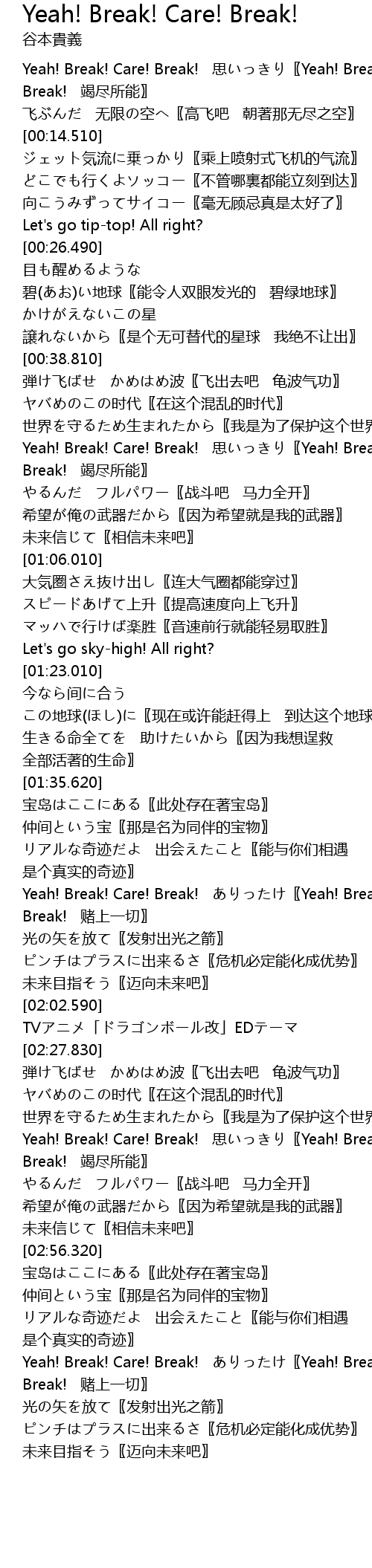 | [02:05.590] | TVアニメ「ドラゴンボール改」EDテーマ |