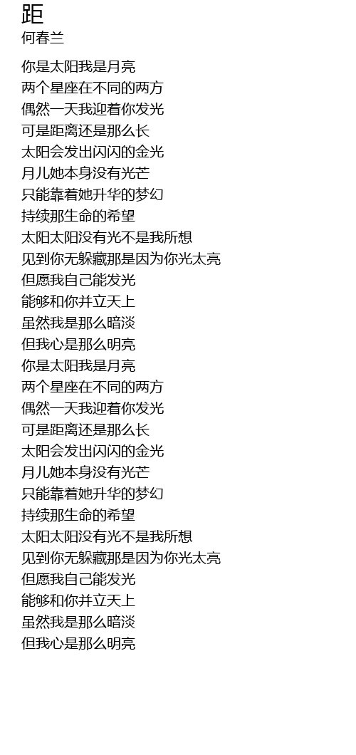 | [01:00] | 太阳太阳没有光不是我所想 |