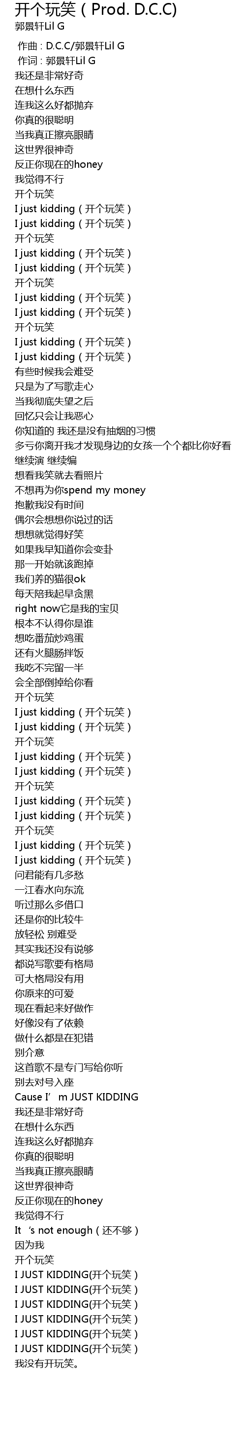 | [02:38.500] | I JUST KIDDING kai ge wan xiao |