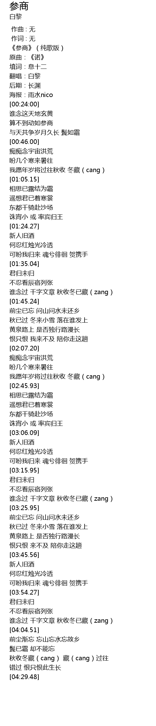 | [00:36.57] | 与天共争岁月久长 鬓如霜 |
