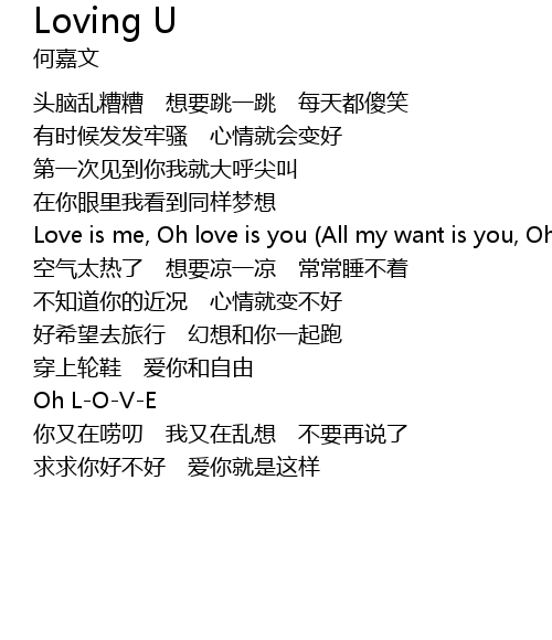 | Love is me, Oh love is you All my want is you, Oh missing you | |