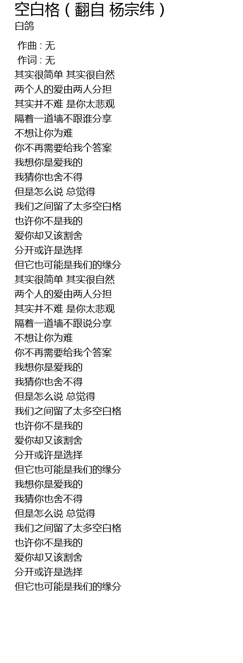 | [04:13.66] | wo men zhi jian liu le tai duo kong bai ge |