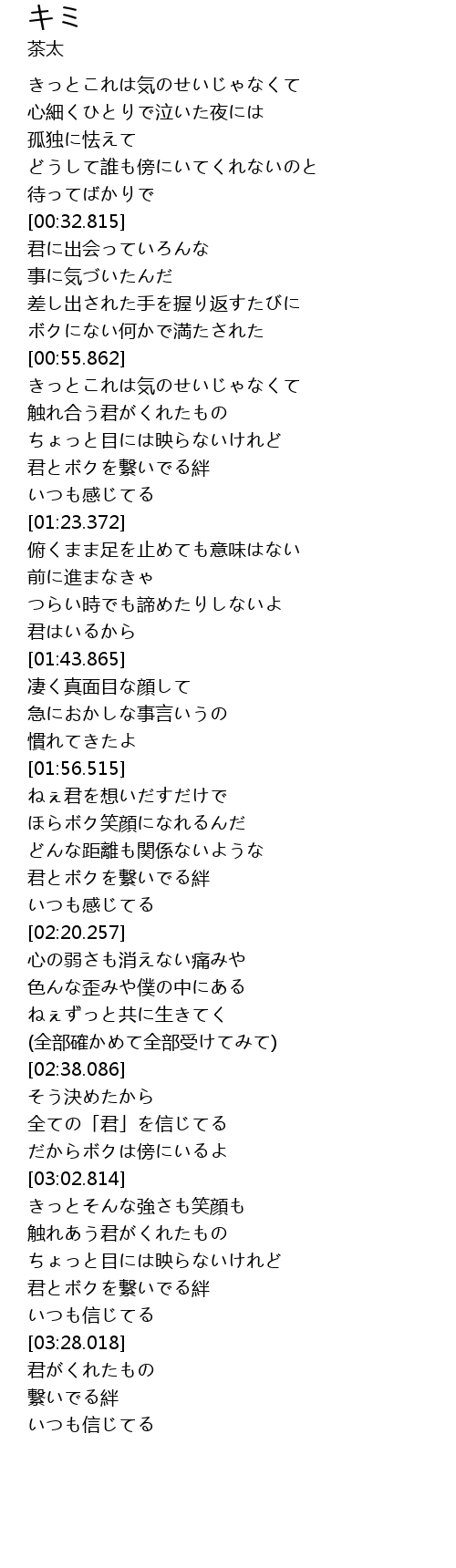 | [03:20.637] | 君とボクを繋いでる絆 |