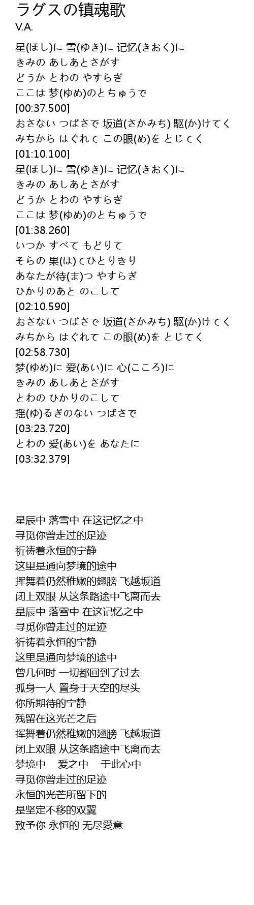 | [00:12.820] | 星(ほし)に 雪(ゆき)に 记忆(きおく)に |