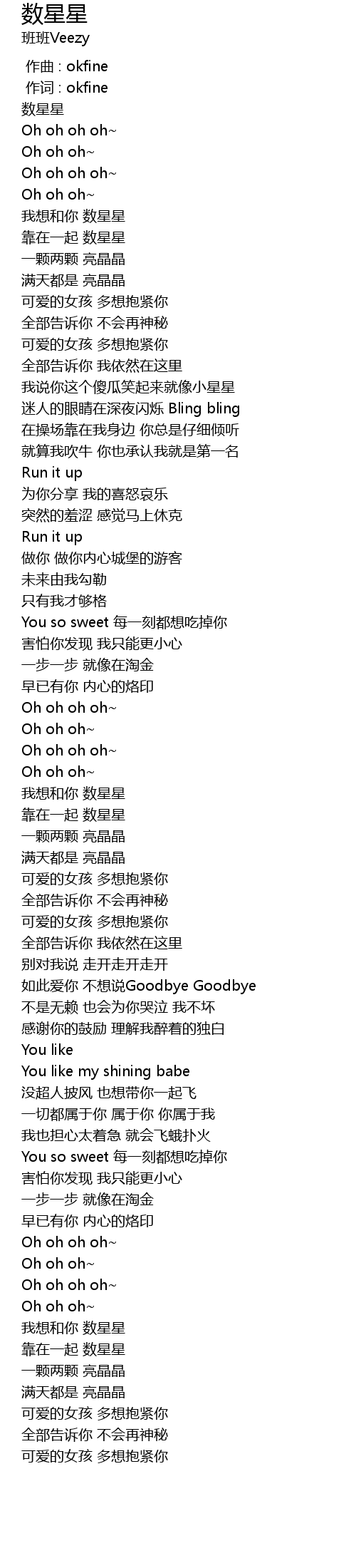 | [00:01.000] | 作词 : okfine |