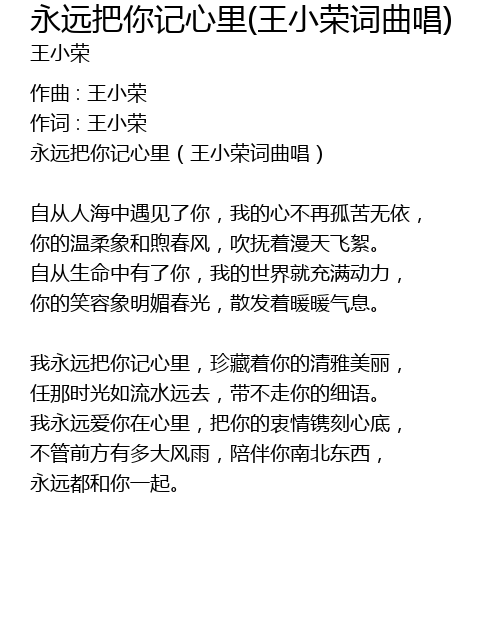 yǒng yuǎn bǎ nǐ jì xīn lǐ wáng xiǎo róng cí qǔ chàng