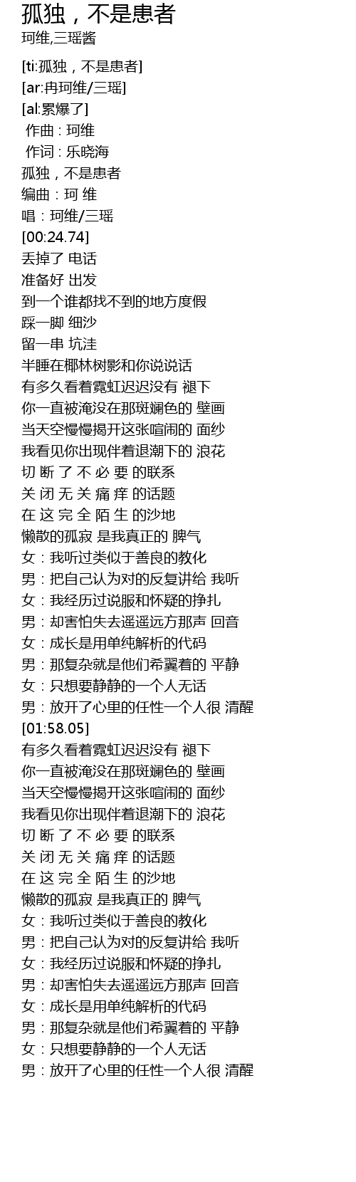| [ti:孤独,不是患者] | |