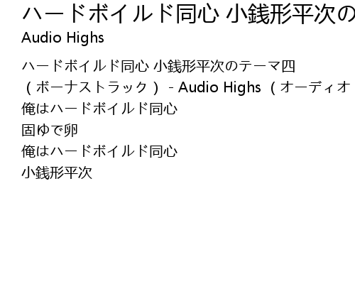 | [00:00.100] | ハードボイルド同心 小銭形平次のテーマ四 (ボーナストラック) - Audio Highs (オーディオ ハイズ) |