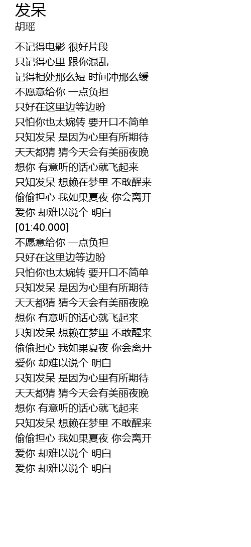 | [00:59.590] | 只知发呆 是因为心里有所期待 |