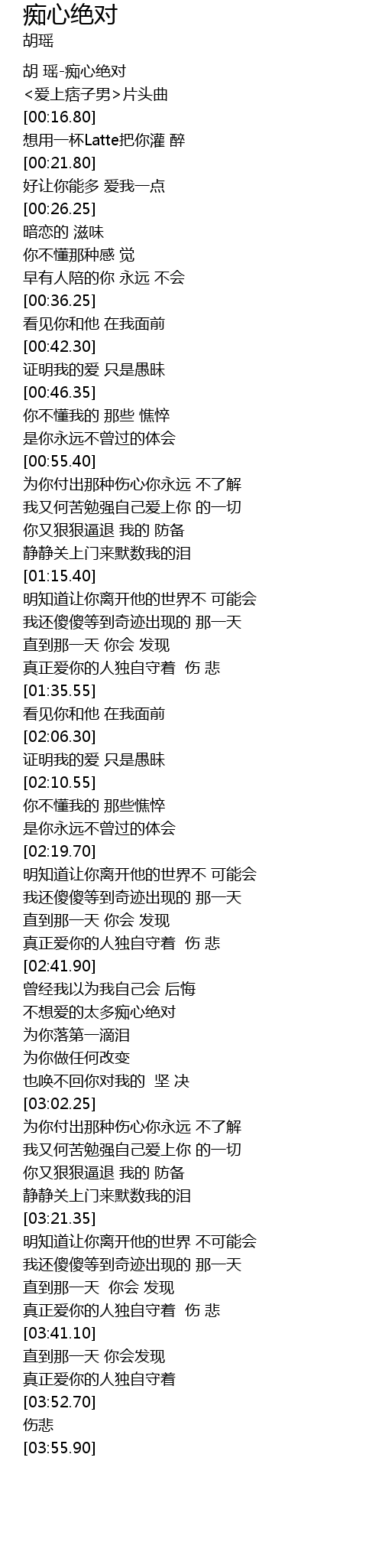 | [00:05.00] | 胡 瑶-痴心绝对 |