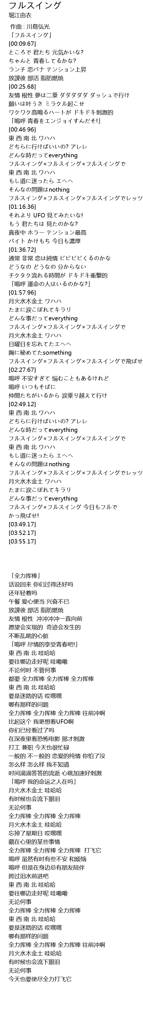 | [00:01.67] | 「フルスイング」 |