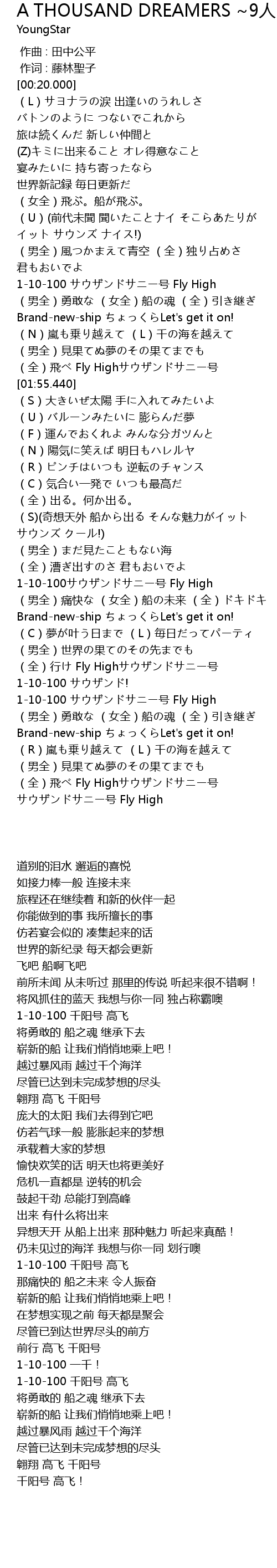 | [03:09.950] | (全)行け Fly Highサウザンドサニー号 |