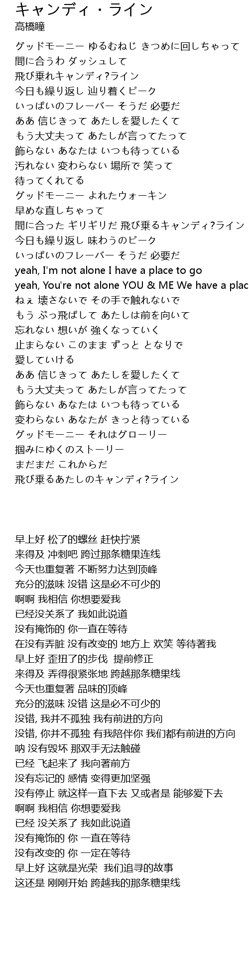 | [00:22.090] | 間に合うわ ダッシュして 飛び乗れキャンディ?ライン |
