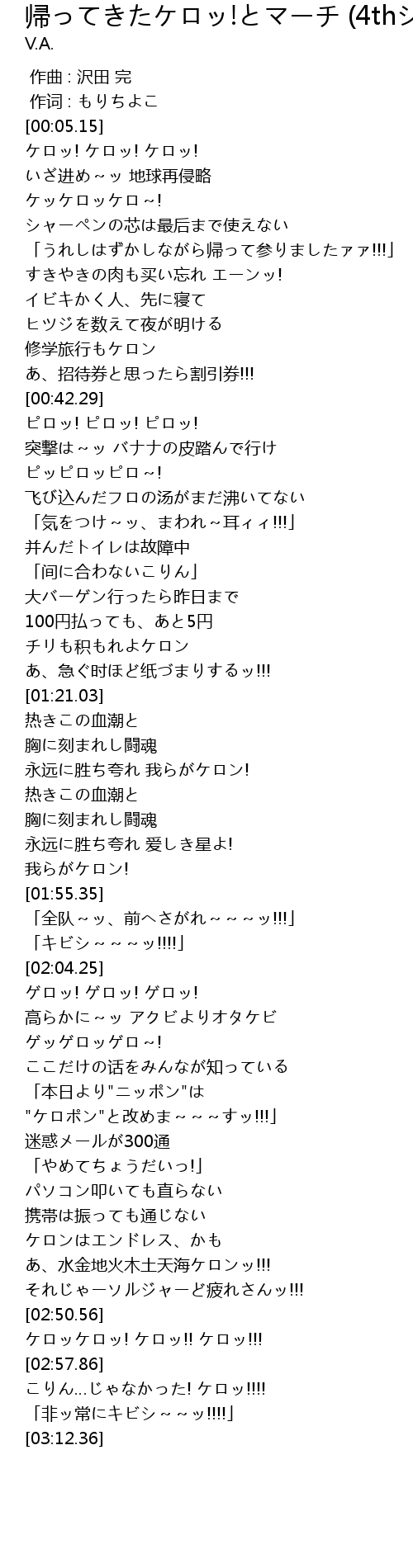 | [02:54.65] | ケロッケロッ! ケロッ!! ケロッ!!! |