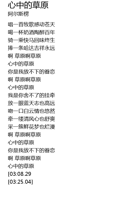 | [03:01.92] | xīn zhōng de cǎo yuán |