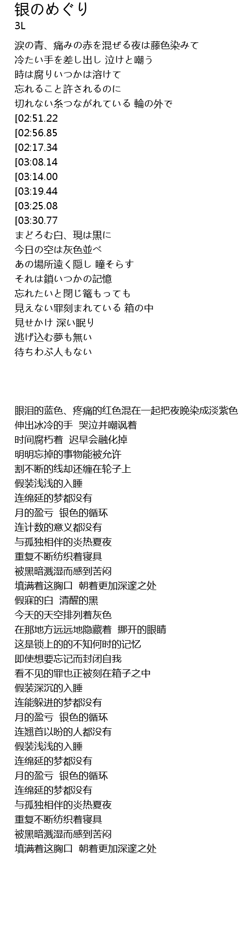 | [00:57.97][02:17.34][03:02.45] | 満ち欠け 銀のめぐり |