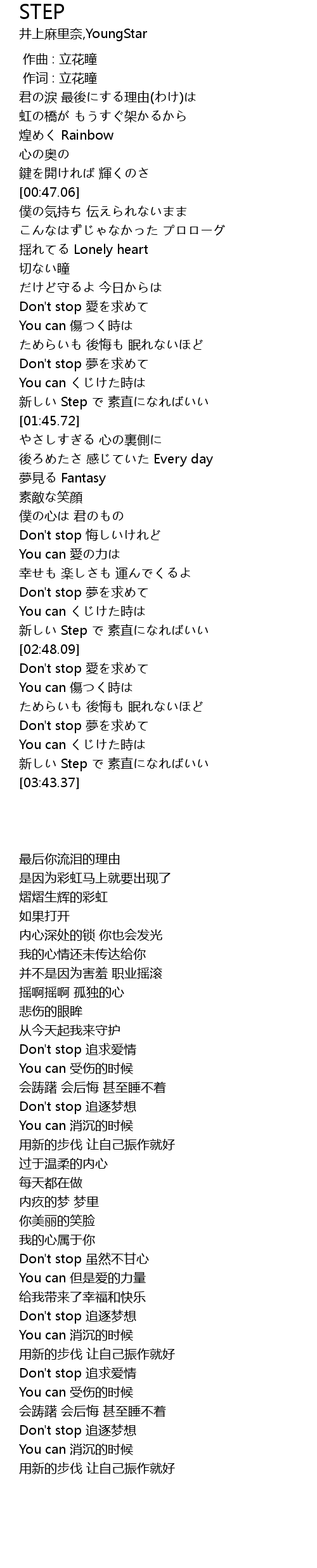 | [03:25.57] | Don't stop 夢を求めて |