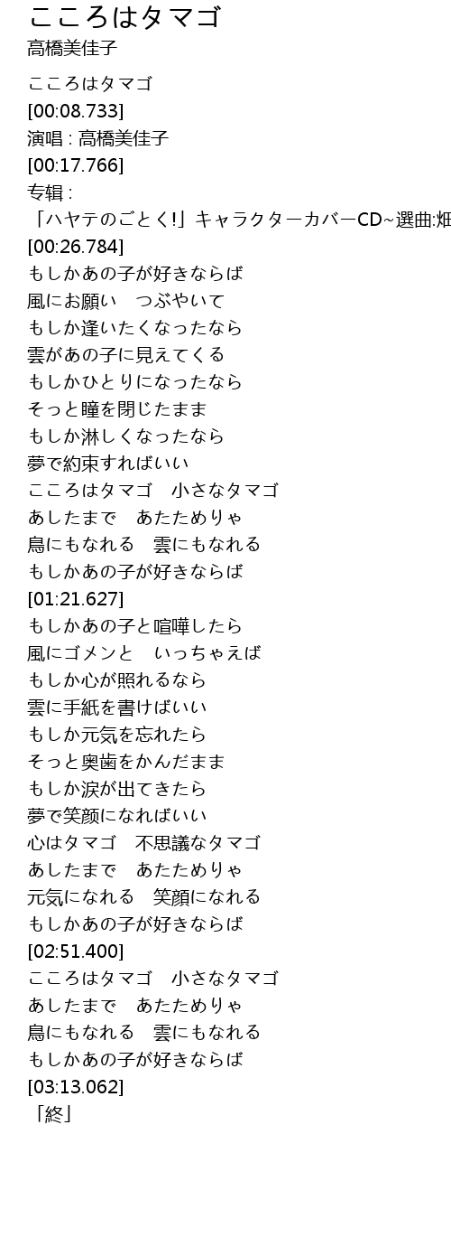 | [02:52.891] | こころはタマゴ 小さなタマゴ |