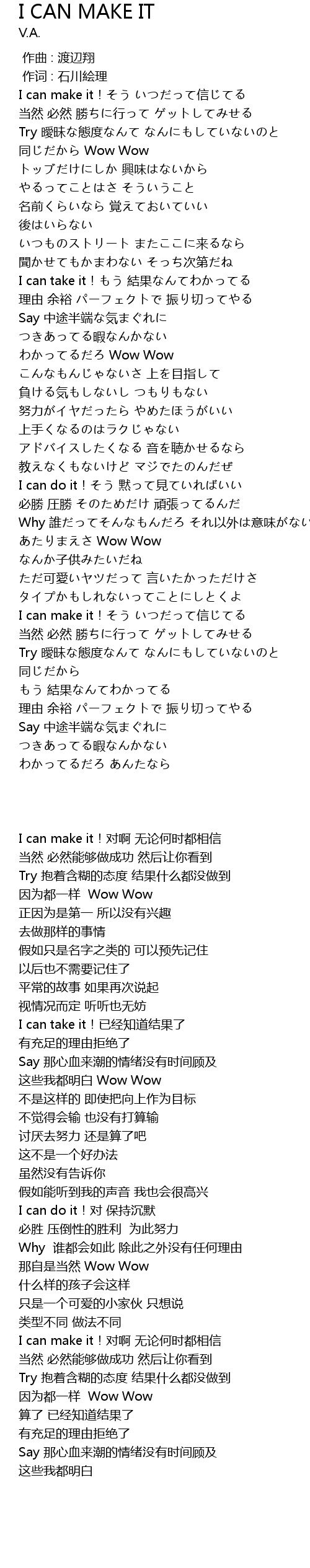 | [00:10.773] | I can make it!そう いつだって信じてる |