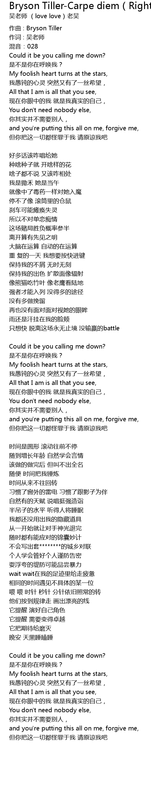 | Song | Bryson Tiller-Carpe diem(Right My Wrongs Remix)(吴老师 remix) |