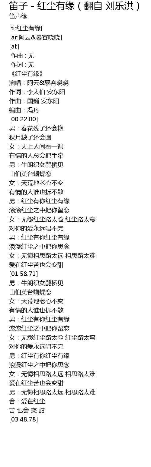 | [03:10.48] | nán: hóng chén yǒu nǐ hóng chén yǒu yuán |