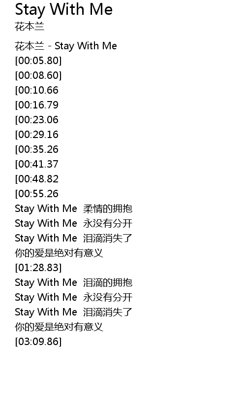 | [00:01.00] | 花本兰 - Stay With Me |