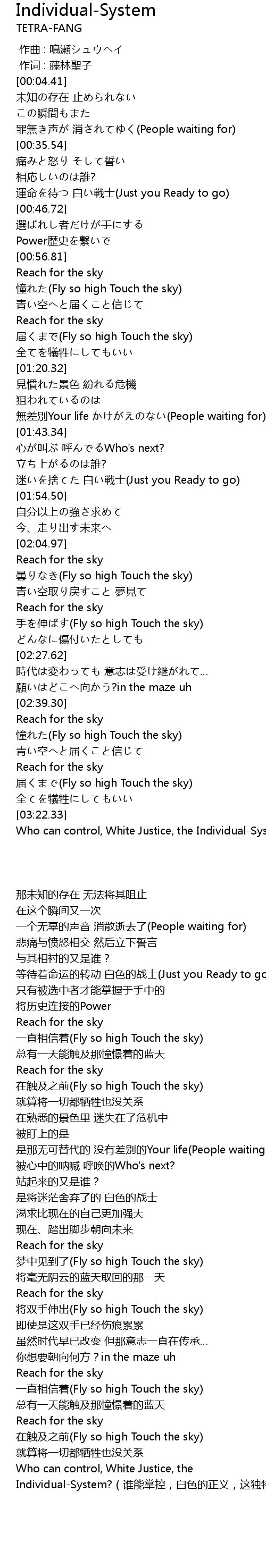 | [03:22.78] | Who can control, White Justice, the IndividualSystem? |