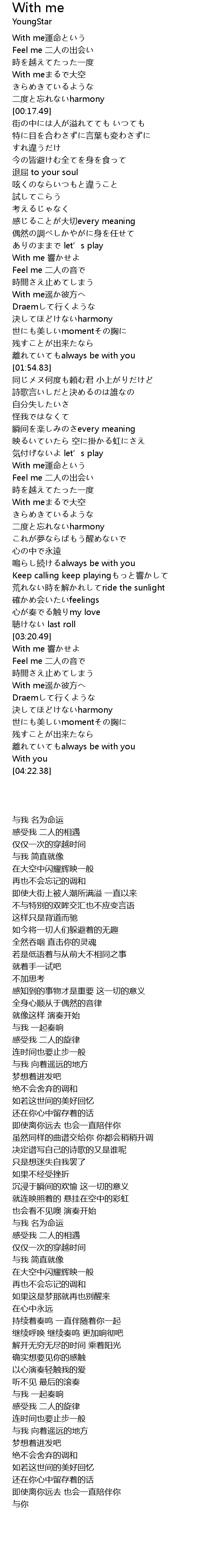 | [03:02.99] | Keep calling keep playing xiǎng |