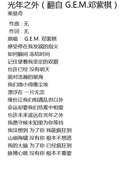 | [00:00.02] | 原唱: G.E.M. 邓紫棋 |